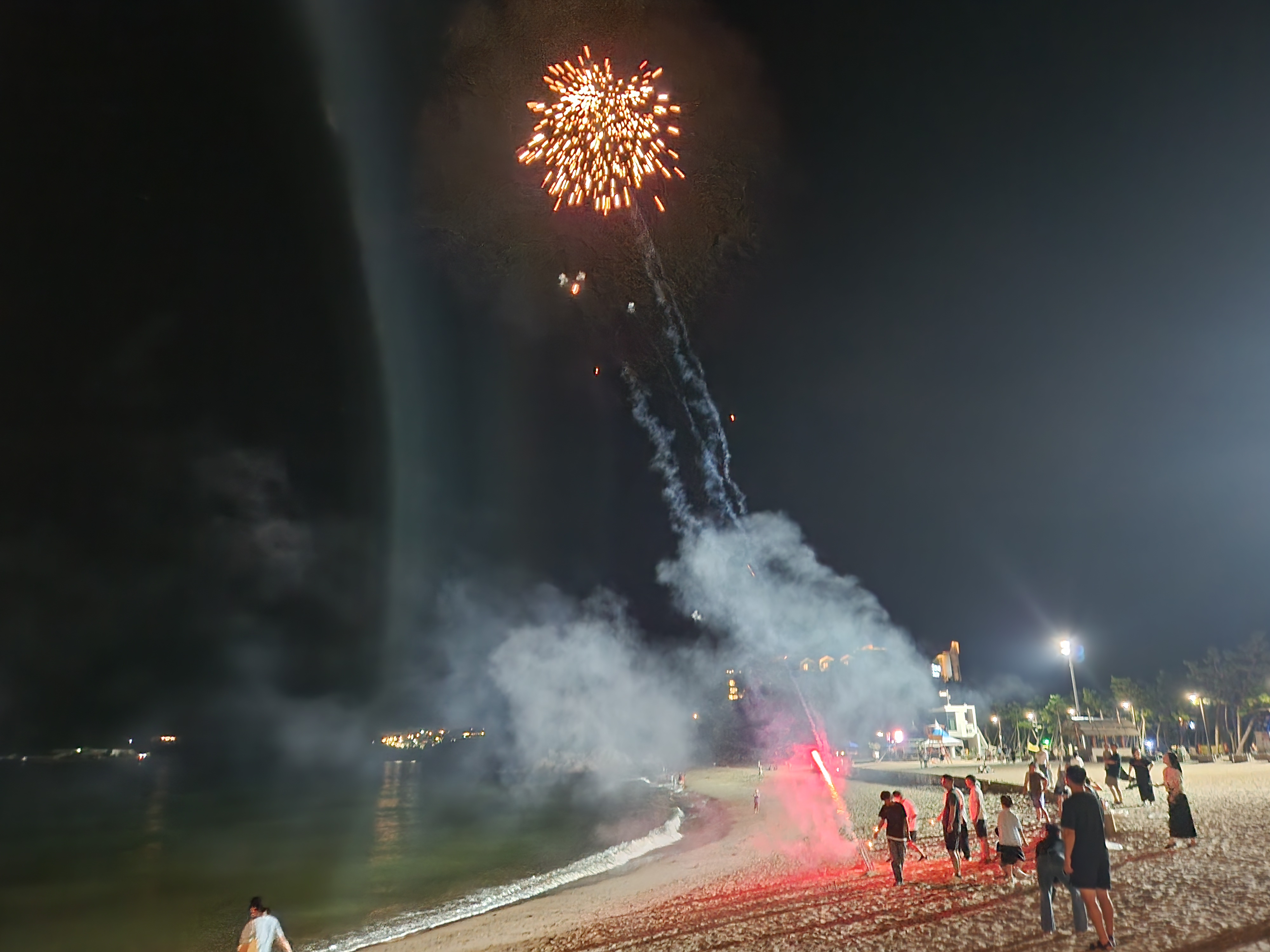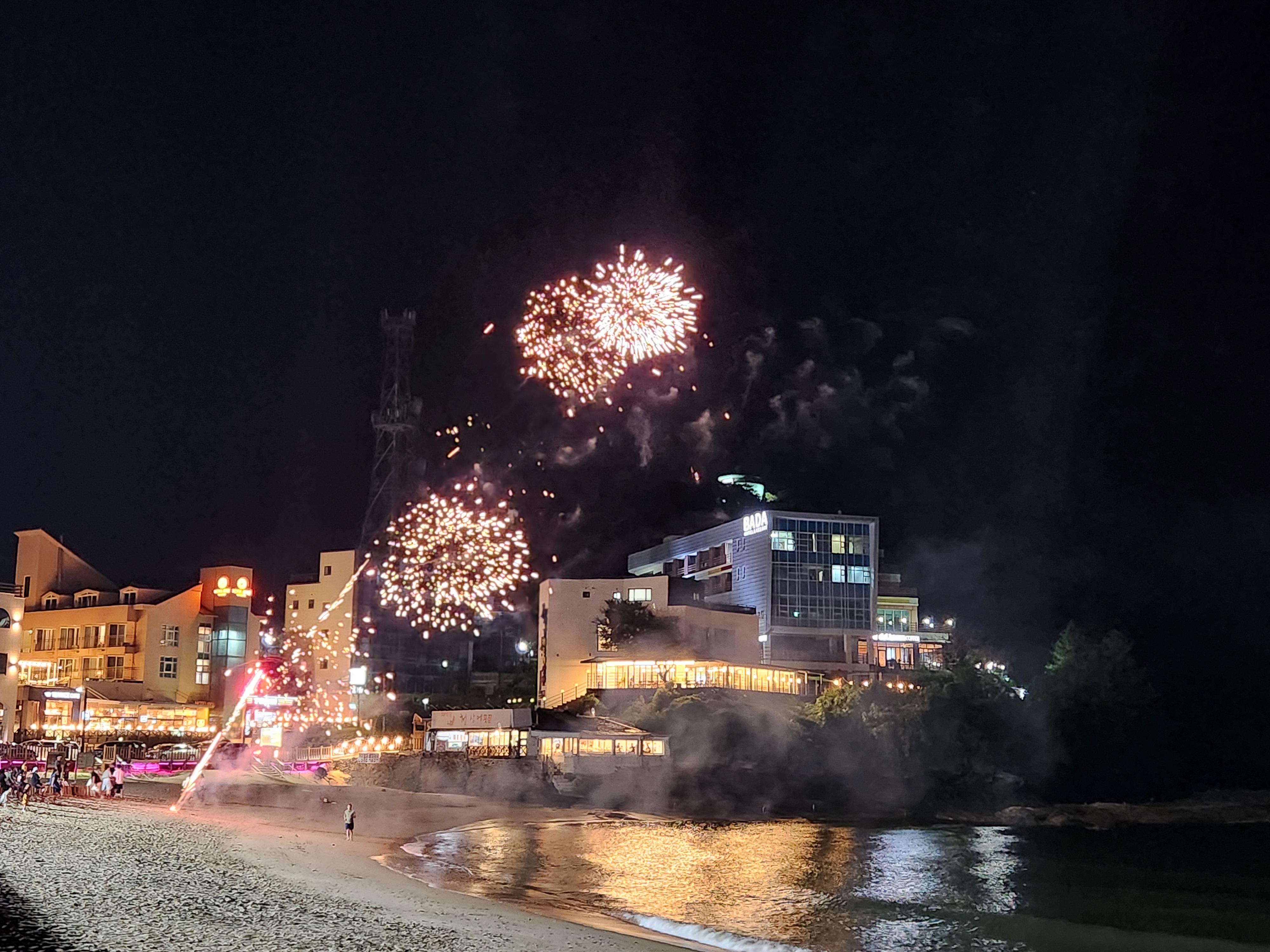 폭죽놀이로 해변은 왁자지껄했다.