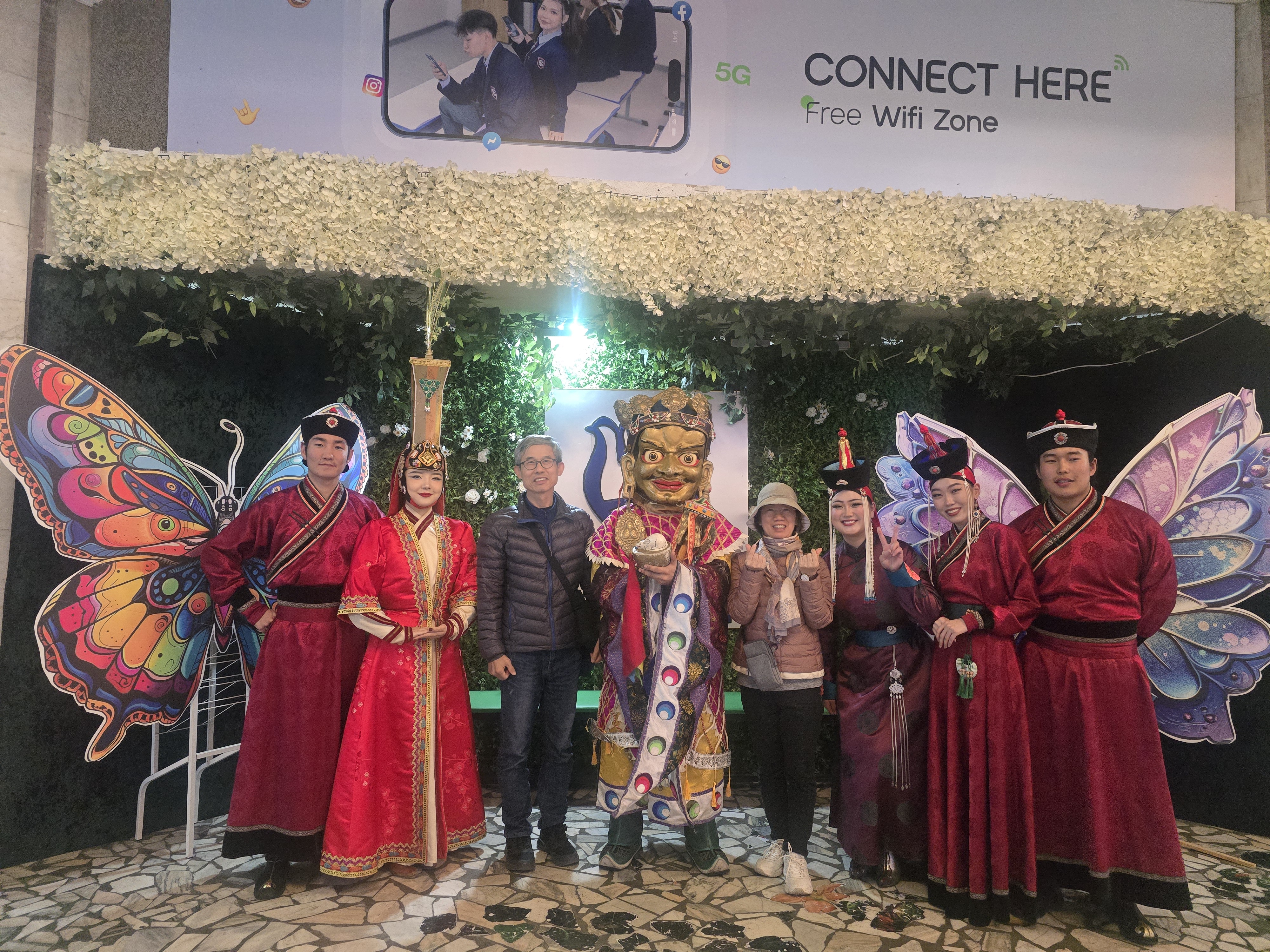 몽골 전통 공연 출연진과 기념촬영