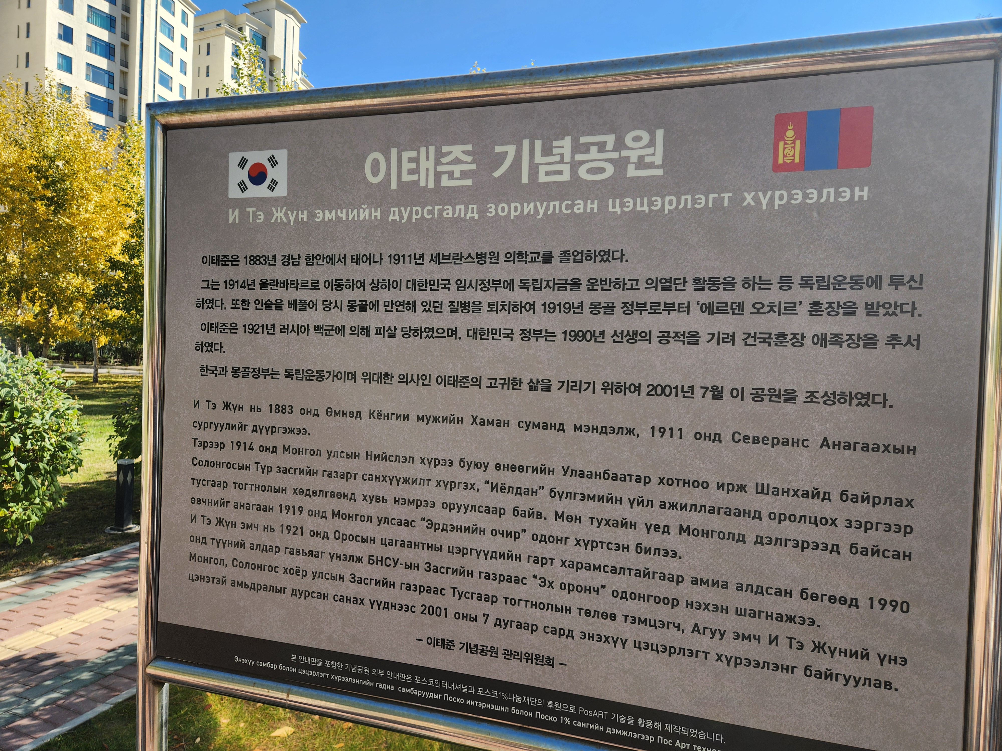 건립됐다. 2001년 몽골 정부로부터 무상으로