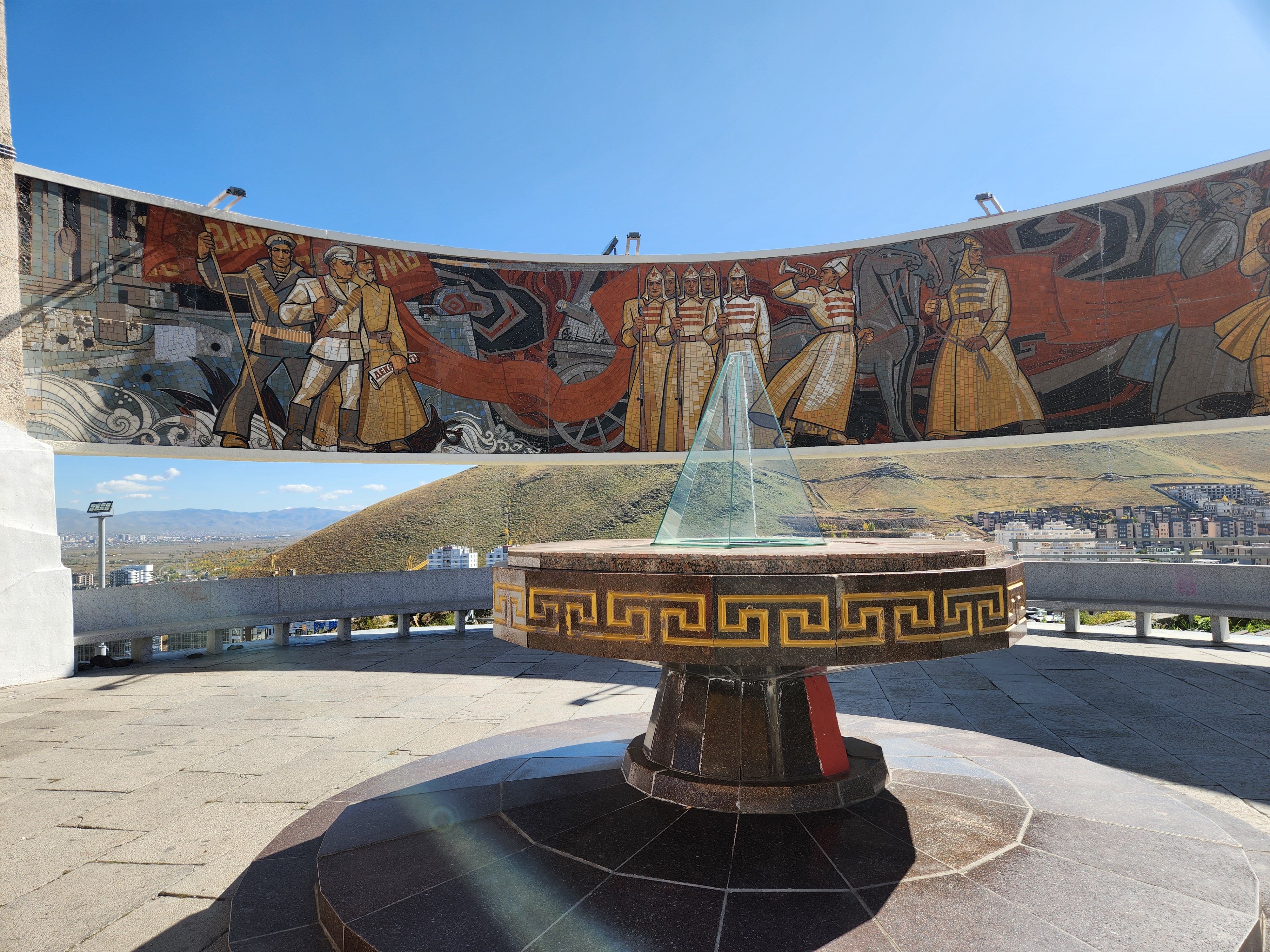 탑의 안쪽 벽면에는 2차 대전부터 몽골 공화국을