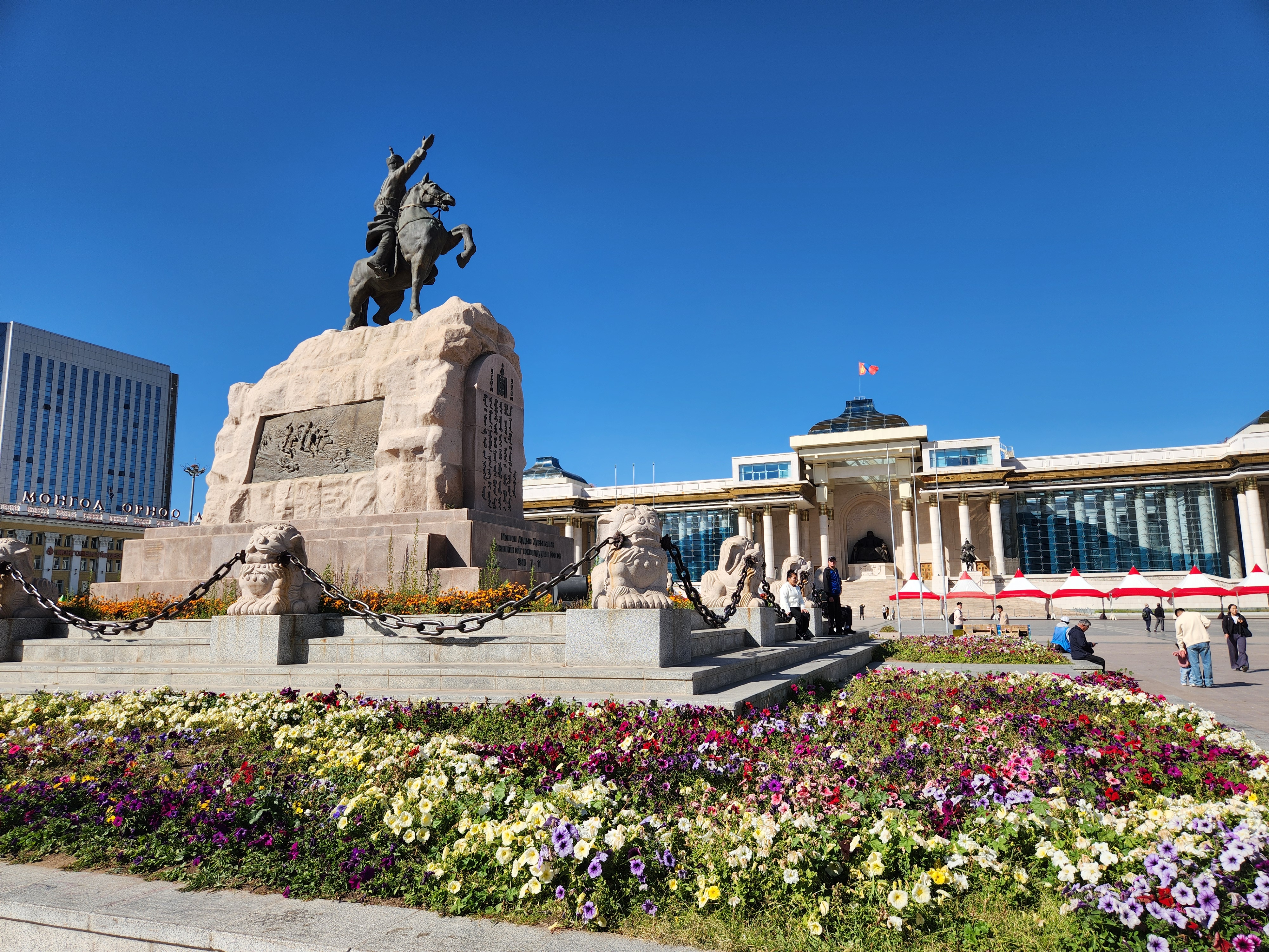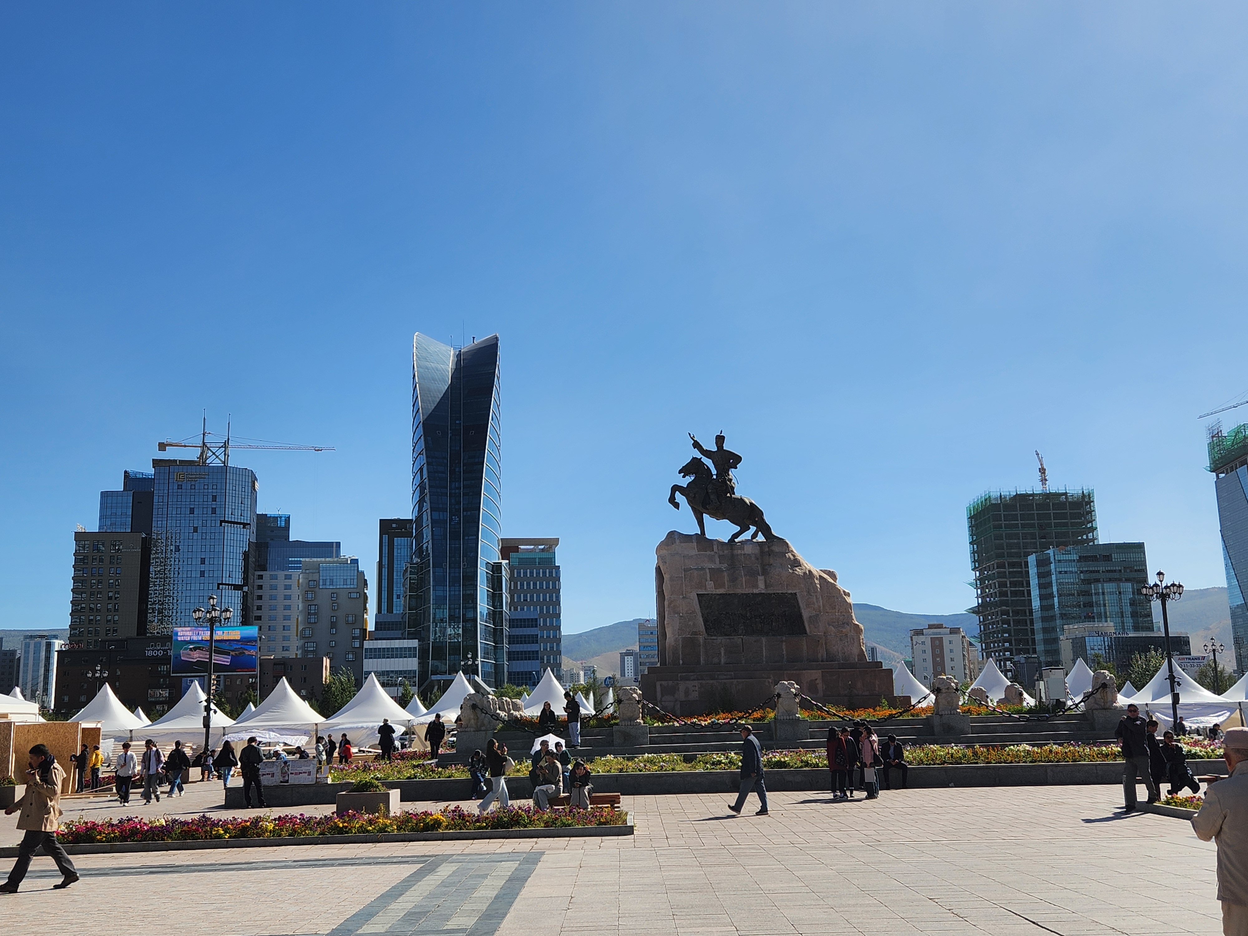 광장에는 말을 탄 용맹한 모습의 수흐바타르