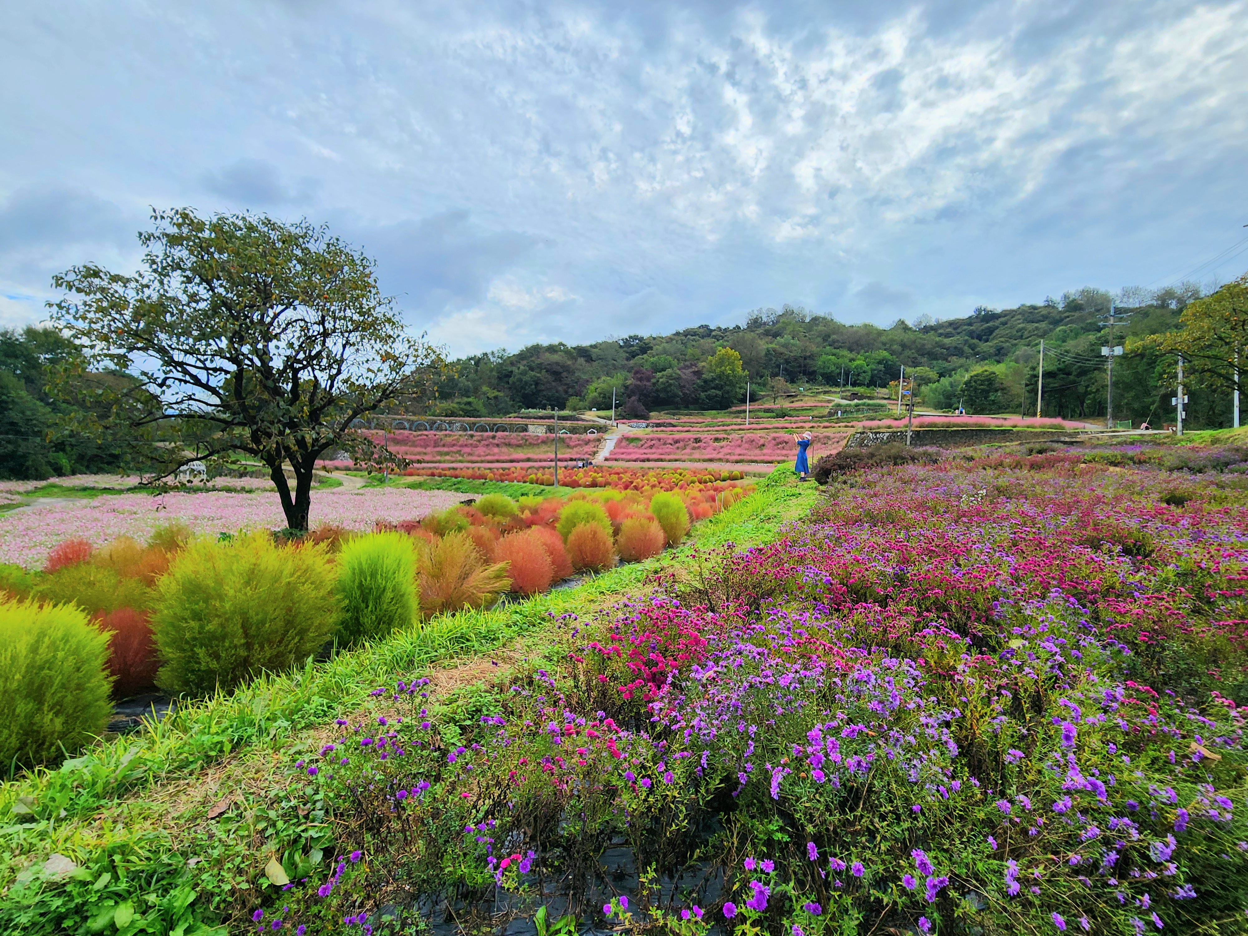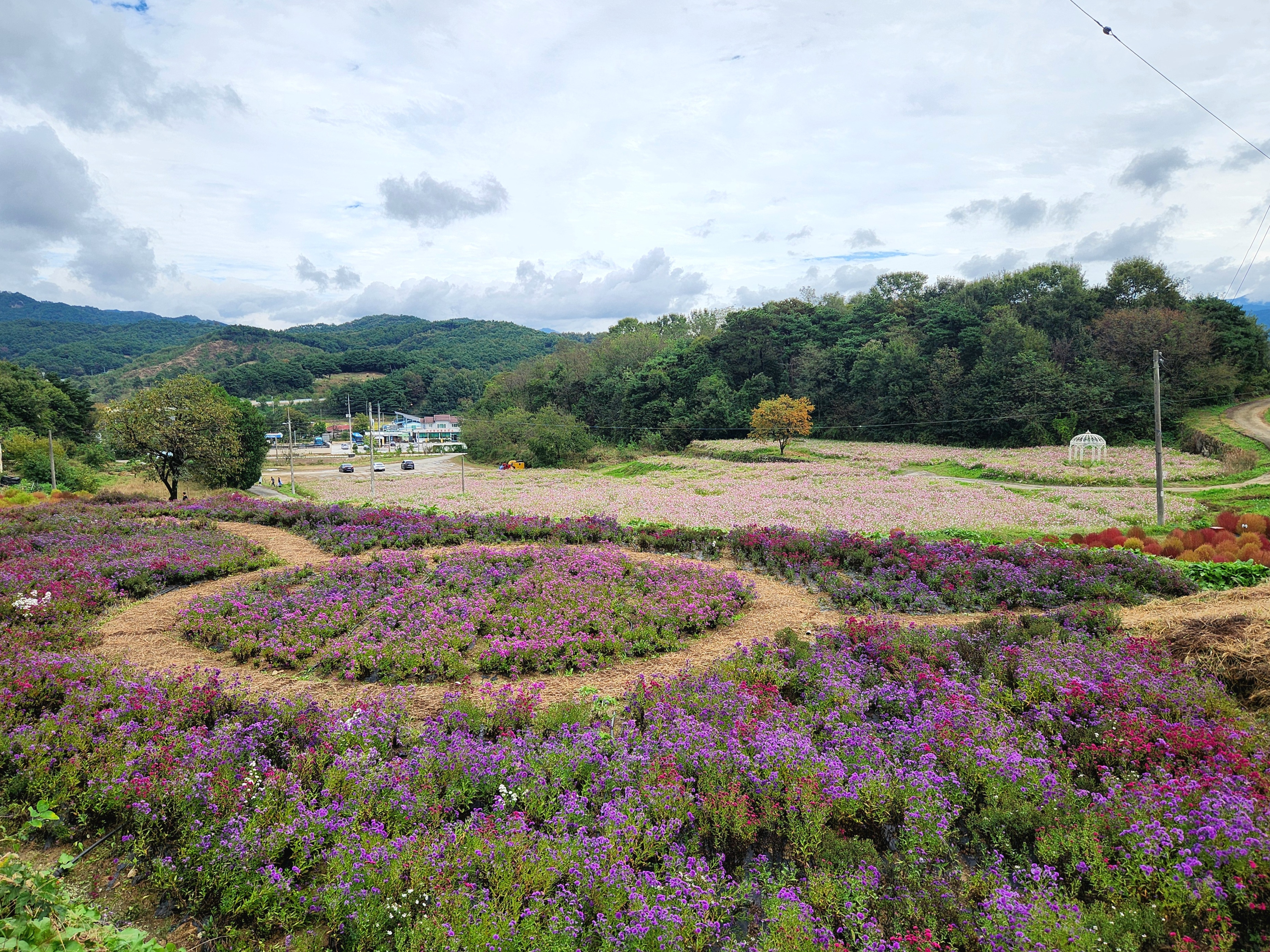 꽃단지에 댑싸리, 핑크뮬리, 코스모스, 아스타 등
