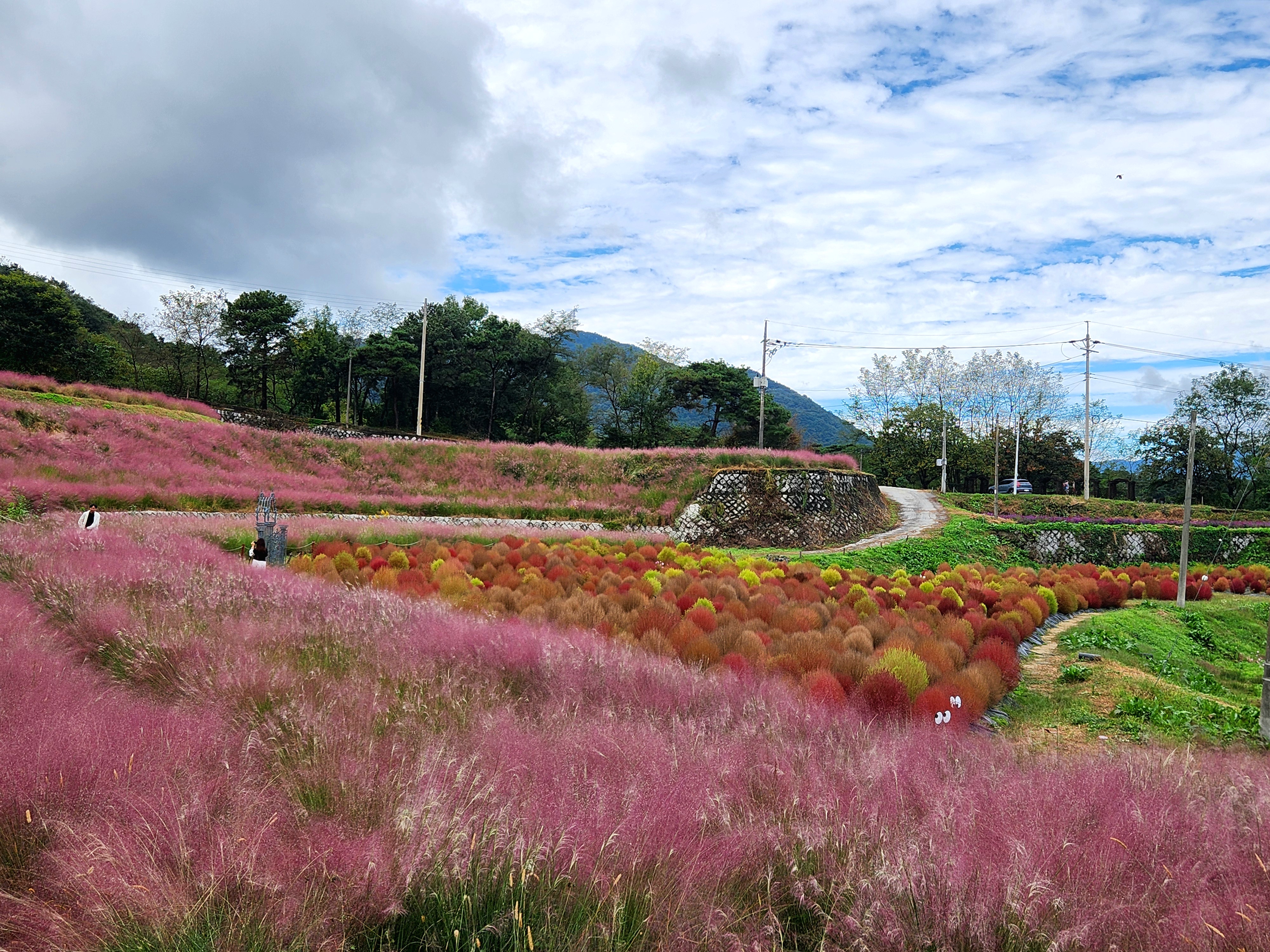 산부추, 핑크뮬리, 댑싸리가 어우러진 풍광