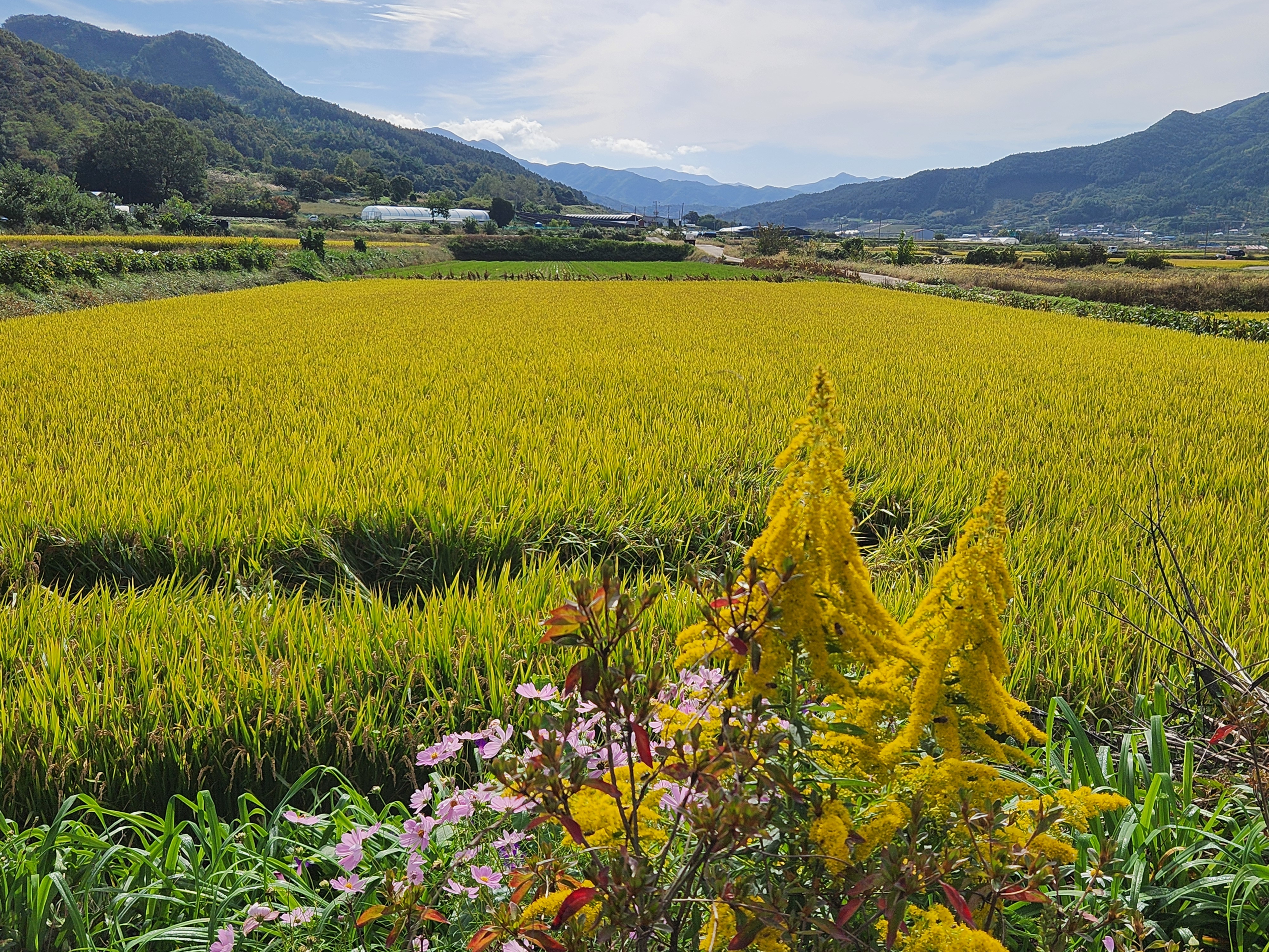 푸른 하늘 아래 벼가 노랗게 익어가는 계절