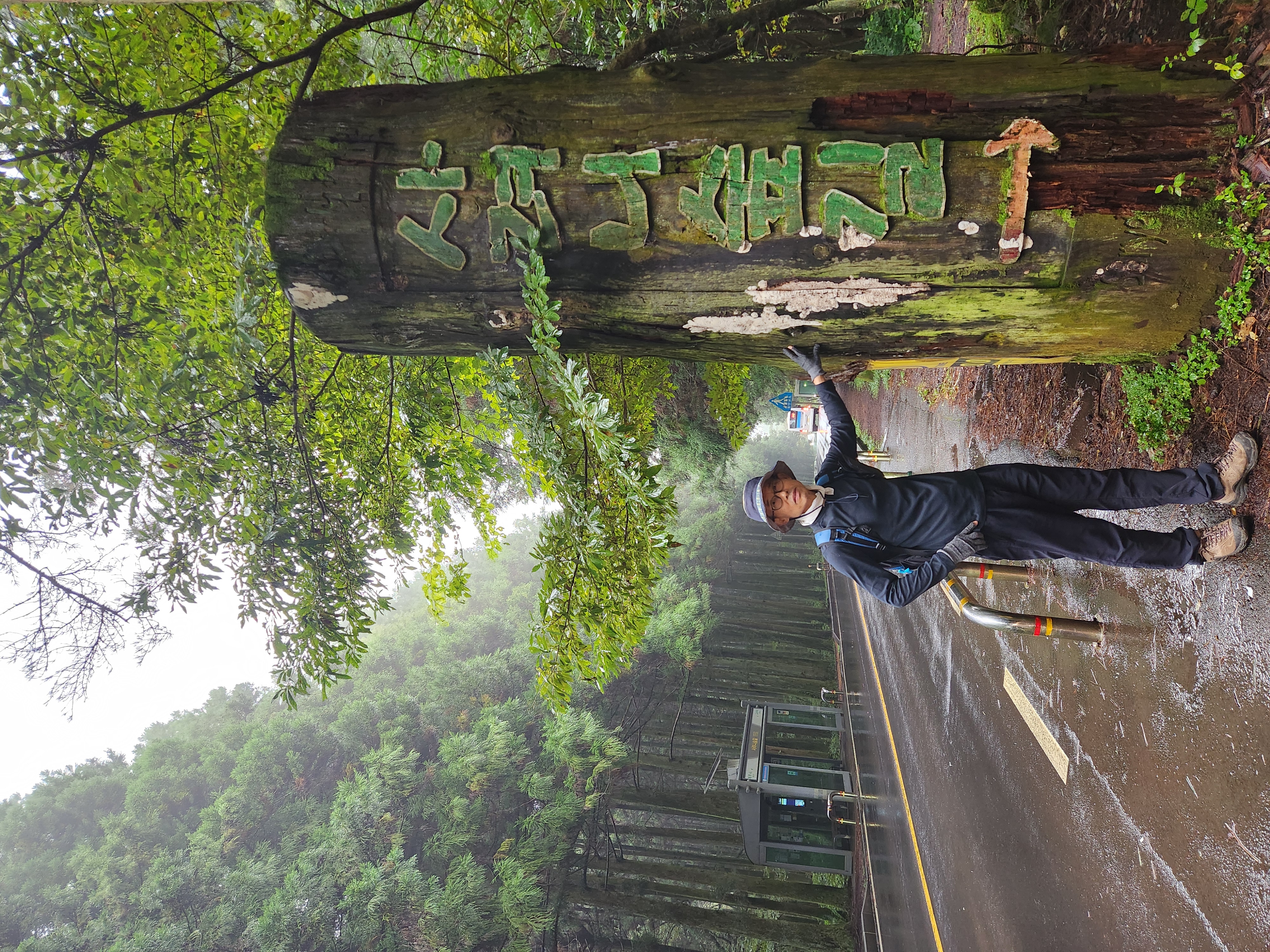 안개비를 맞으며 사려니 숲길을 걷는다.