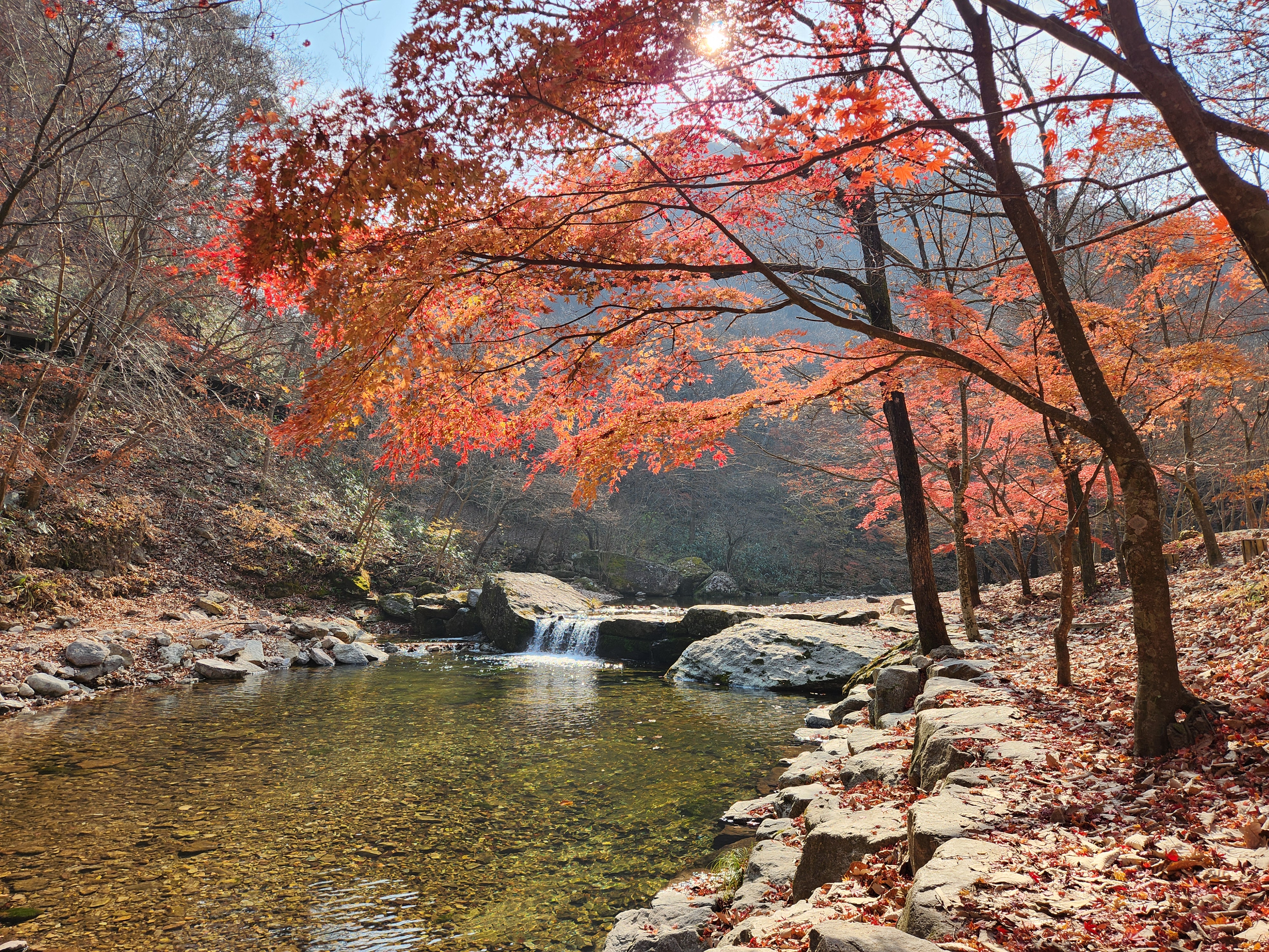 계곡에는 나뭇잎이 수북히 쌓이고