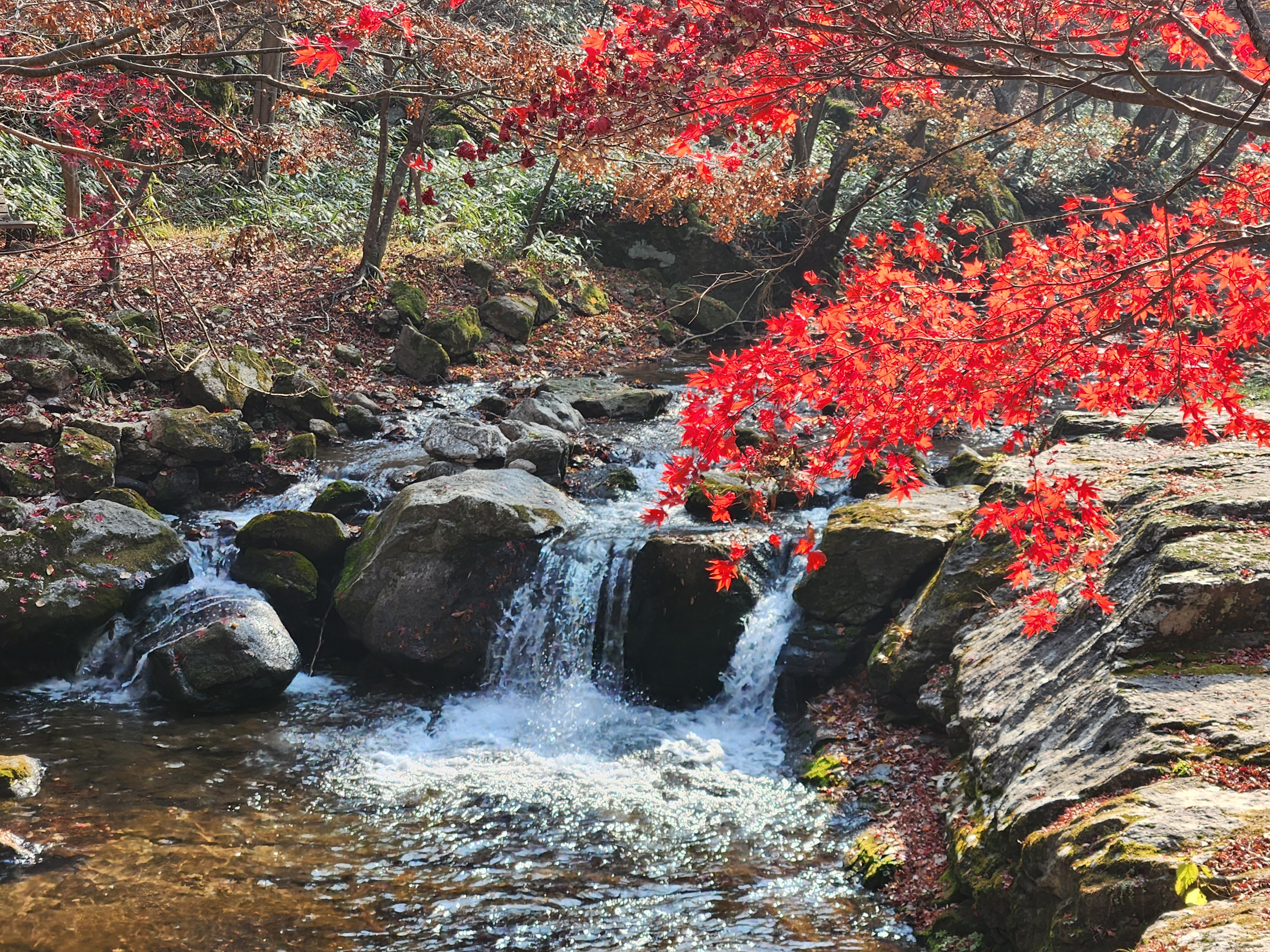 계곡물과 어우러진 단풍이 예쁘다.