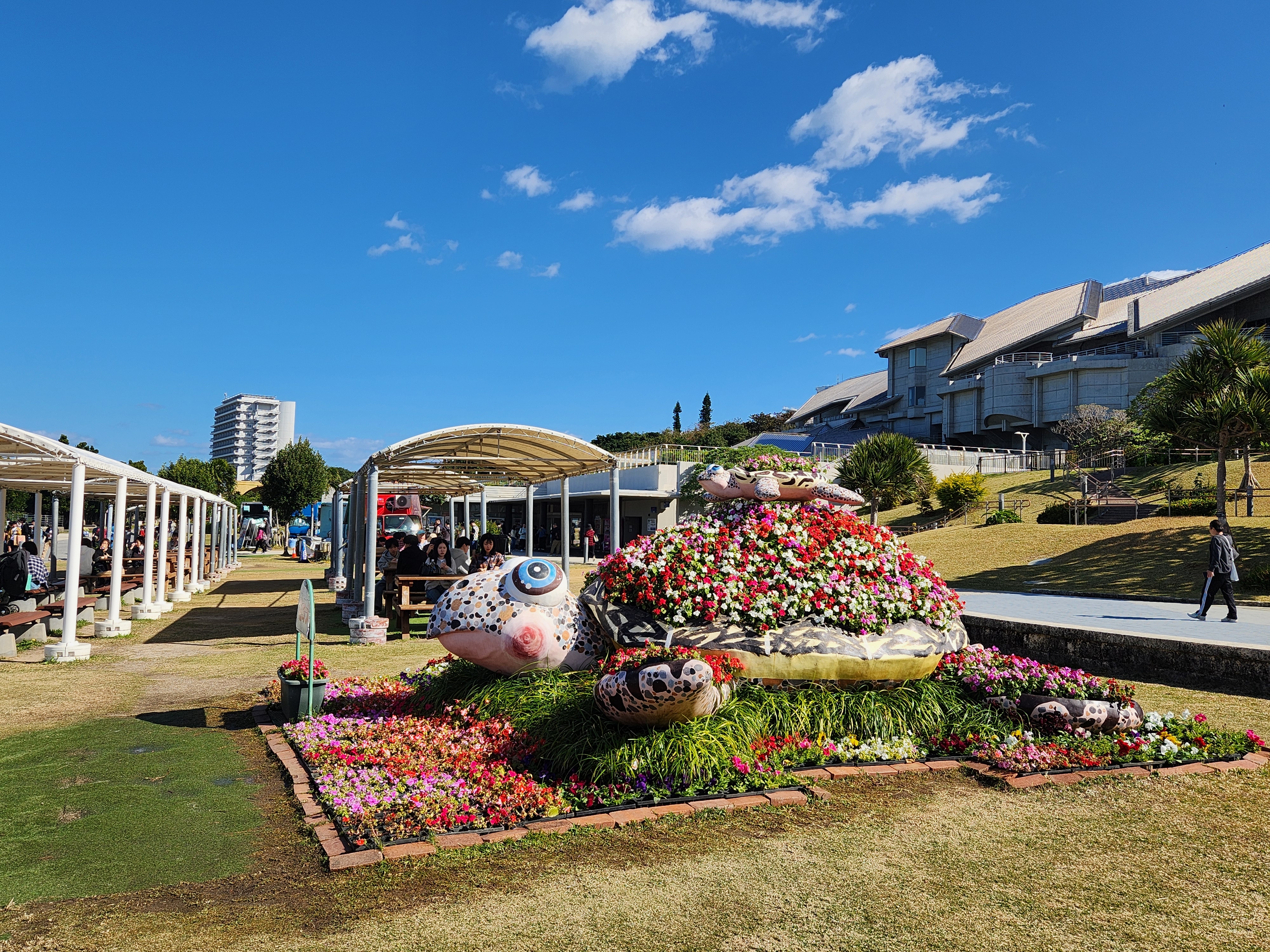 츄라우미 수족관 주변 공원에는 봄꽃으로 화려하게