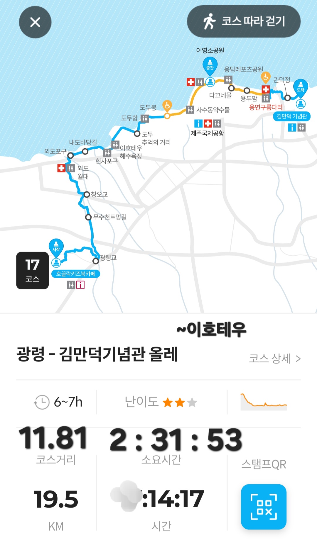 하여(315번, 약 1시간 20분 소요) 17코스를